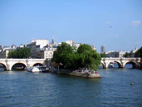 シテ島はポンヌフを静かに眺めることができる絶好の場所でもあります。シテ島の河岸の一つであるケ・デ・ゾルフェーブル(Quai des Orfevres)からは美しいポンヌフの堂々とした姿を見ることができ、夜には欄干に灯された外灯によってその美しさはさらに高まります。この河岸は「銀細工商の河岸」という意味で、探偵映画の舞台としてよく使われているそうです。近くに裁判所があることも偶然ではないでしょう。関連するパリ観光