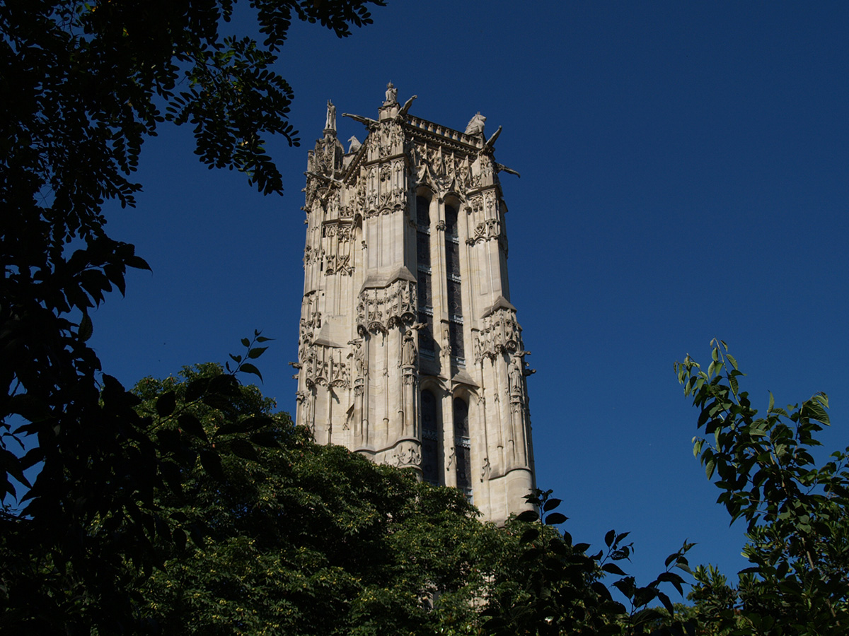パリの塔といえばエッフェル塔ですが、パリにはもう一つ塔があります。パリの中心シャトレ広場からリヴォリ通りへ向かって歩くと、不意に異様な塔が見えてきます。ゴシック・フランボワイヤン様式の美しい塔。サン・ジャック塔と呼ばれ、パリ4区で不思議な空間を醸し出しています。教会が破壊され塔だけが残った