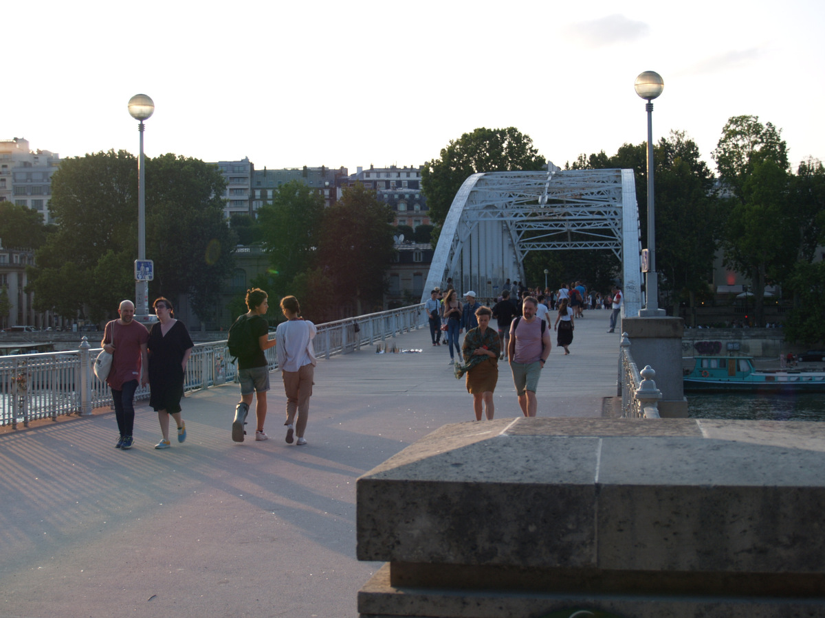パリ7区にあるケ・ブランリ美術館の前を通ると、鉄骨のアーチで組まれた存在感のある橋が見えてきます。ここはドゥビリ橋というセーヌ川に架かる歩行者専用の橋。セーヌ河右岸のニューヨーク大通り(パリ16区)とケ・ブランリ河岸(パリ7区)を結んでいます。あまり観光地としては知られていませんが、エッフェル塔の隠れた絶景スポットとして人気の高い穴場です。観光客で混んでいないので、橋の上からのパリの景色をゆっくり楽しむことができます。夕暮れ時にこの橋から眺めるエッフェル塔は格別です。